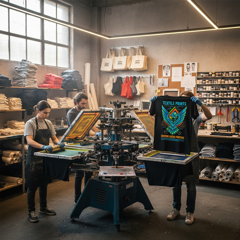 El estampado textil utiliza pinturas especiales que se adhieren a la tela mediante presión y calor, creando un acabado sólido y resistente al lavado. Es una técnica perfecta para diseños simples, lineales o con colores planos que buscan versatilidad y buena durabilidad.